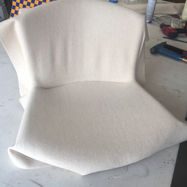 My version of the Bertoia shell chair is upholstered with wooden legs.